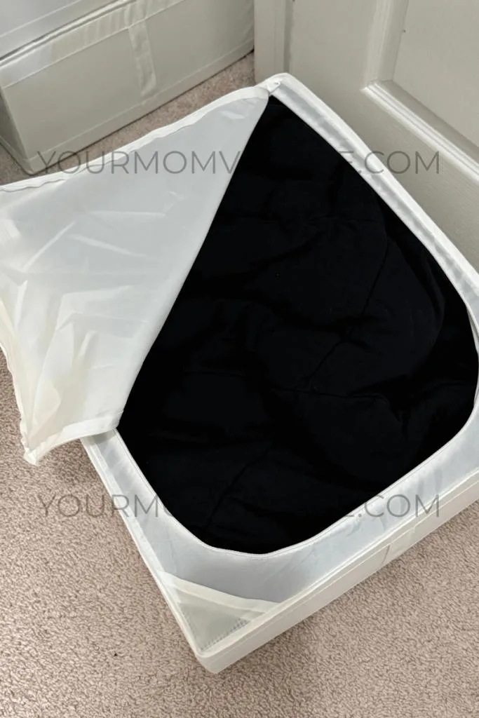 But our master comforters are so large that they are hidden in our masterbed room closet inside a Zipper Fabric Storage Cubes Gray