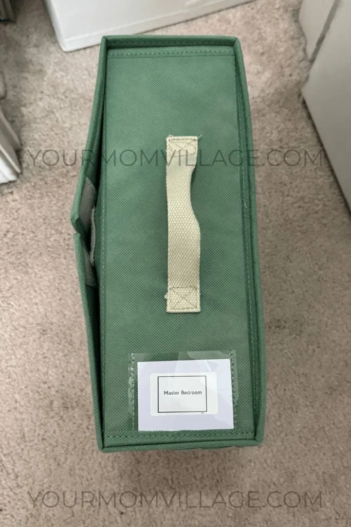 6. Place one set of sheets in the organizer box, and one clean set on your bed. (So this means your bed has a clean set, and your other clean set is inside the box. Ready to be queued for the weekly bed sheet change.
